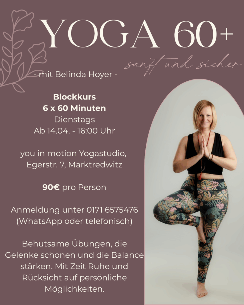 Und wenn du selbst einen Raum suchst, um etwas von dir mit der Welt zu teilen: das you in motion Studio kann gemietet werden – für Yogastunden, Workshops, Zeremonien oder Herzensprojekte aller Art. Ganz egal, ob du aus Marktredwitz, Wunsiedel oder dem schönen Fichtelgebirge kommst – hier ist Raum für dich. Kontaktiere mich hierfür ganz unverbindlich.