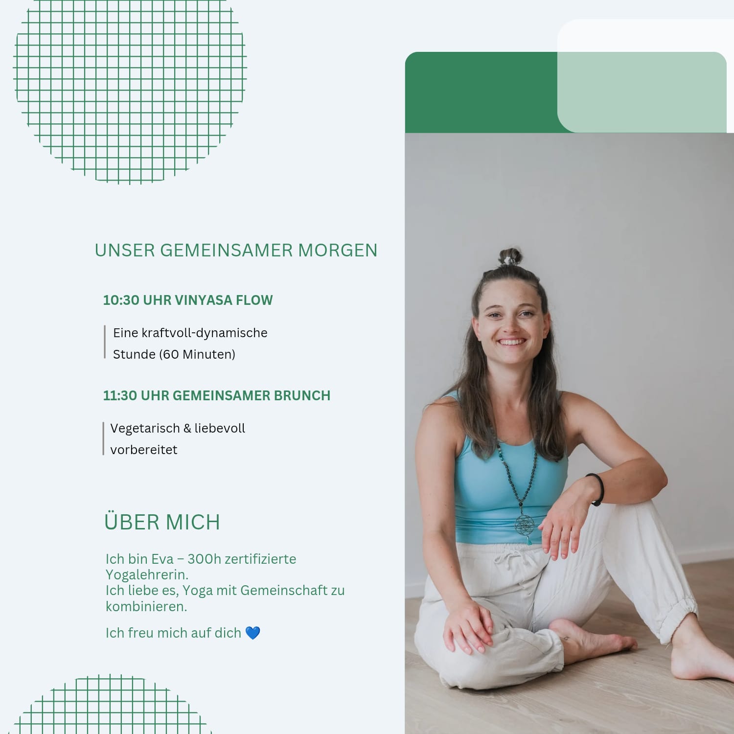 Der Raum trägt meine Handschrift – liebevoll, offen, authentisch. Geprägt ist er von meinem Weg als Yogalehrerin, Coach, Mama und Freigeist – und von meiner tiefen Freude daran, Menschen in ihrer Einzigartigkeit zu begleiten.